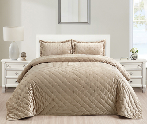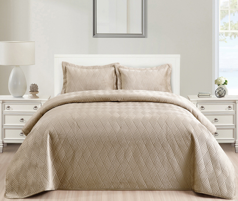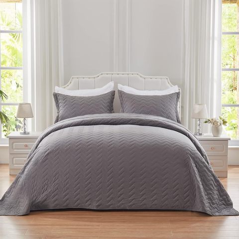 Kadife yatak örtüsü nevresim takımı ultrasonik kabartma veya kapitone veya nakış tasarımları ile yatak örtüsü